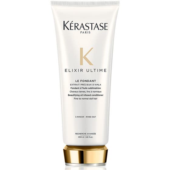Kérastase Elixir Ultime Le Fondant Conditioner beskyddar och ger intensiv näring åt hårfiberna. Detta krämiga oljebalsam jämnar ut hårfiberna för att främja glans. En blandning av 4 olika oljor; amla, majsgrodd, kamelia och arganolja för tunt till normalt livlöst hår för en fin glans som omedelbart slätar ut och mjukar upp håret samtidigt som den ger näring.
