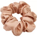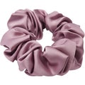"Stilrena och tidlös scrunchie tillverkad i 100% mullbärssilke och har en vikt om 22 momme - vilket är måttet för silkes kvalitet och tjocklek. Ett smycke samtidigt som den håller håret på plats utan att skava på det yttersta skiktet vilket främjar friskt hår.